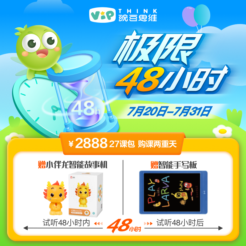 7月20-31日24点期间,首次完成直播体验课的试听,并在试听后48小时购买系统课赠小伴龙智能故事机