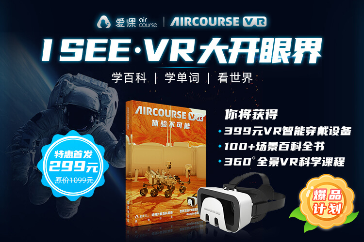 ③【爱课轻课】公众号菜单栏 -【点我上课】- 【VR大开眼界】即可上课。或扫描实物书本上的二维码进入对应课节上课。建议您在收到实物礼盒后,佩戴配套VR眼镜上课。