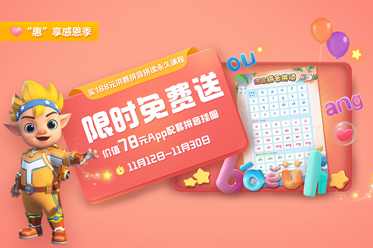 活动期间购买洪恩拼音拼读永久课程包送价值78元拼音挂图
