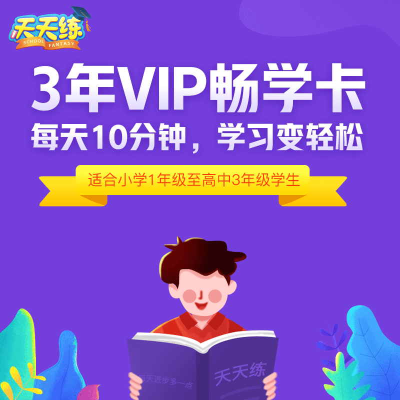 建议每天学习10-30分钟,VIP3年卡激活后有效期3年。重复购买同一学段会累加顺延会员有效期。有效期过后,只能学习免费区域的课程。VIP内容不支持回放。