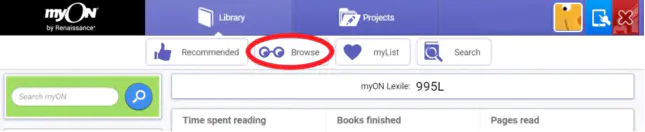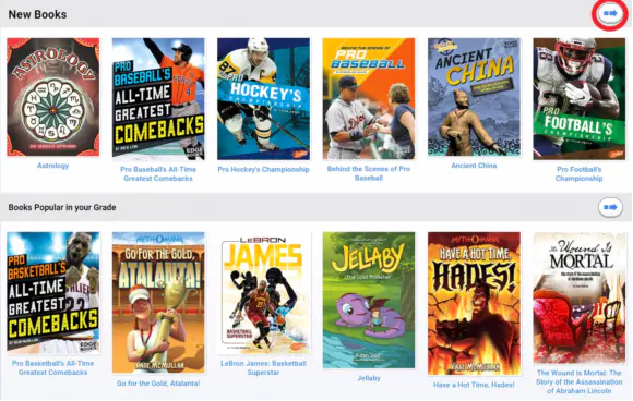 蓝思测试完成之后,在开始阅读之前可进入图书馆选书需要先选取一本书。点击顶部的Library图标,进入图书馆来进行选书。