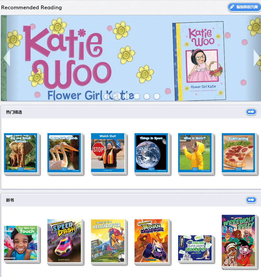 该页面内会根据不同的标准推荐阅读书目。可通过点击右箭头查看更多推荐书目。