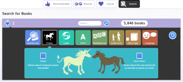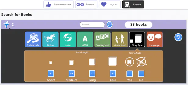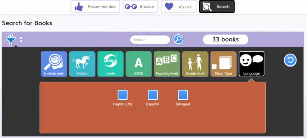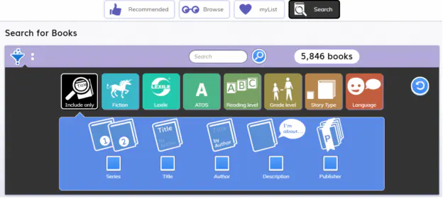 myON阅读平台有着非常细分标签的搜索功能。小朋友可以利用多条件组合搜索框搜索,快速的查找书籍,也可以通过一本喜欢的书,查找难度相似的、题材相近的、同系列的书。