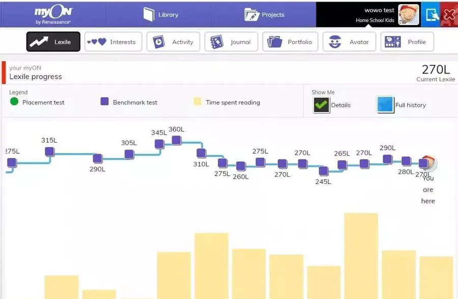 myON阅读定级清晰并以2周为周期动态调整。蓝思测试贯穿myON阅读平台的使用,为精准推荐合适的书籍提供了保证。