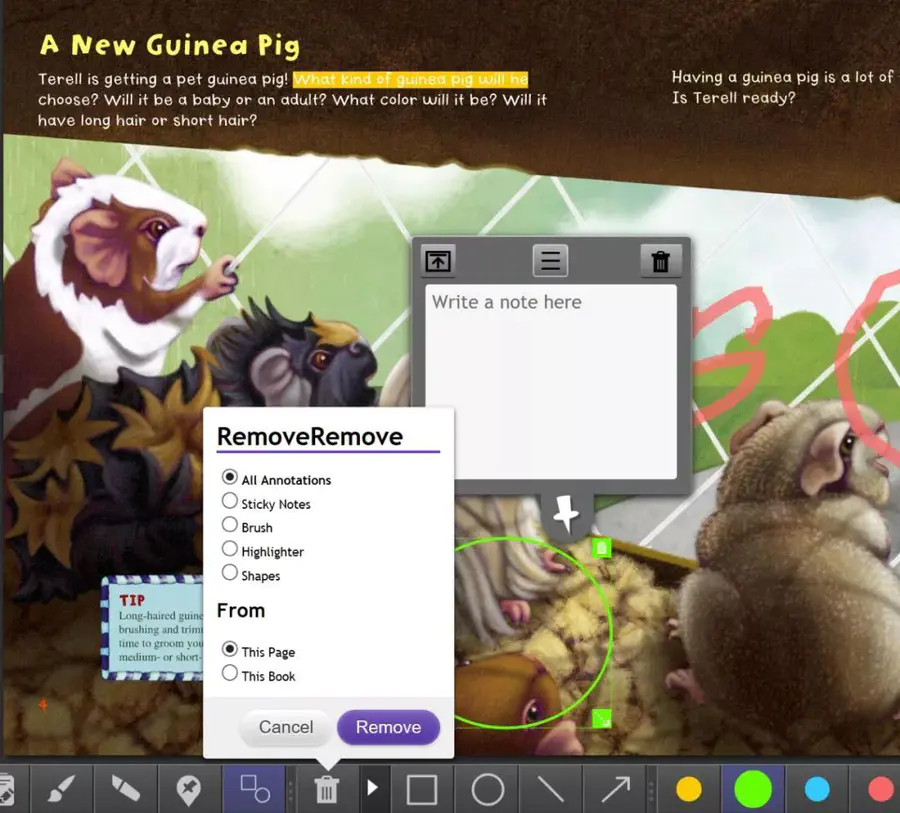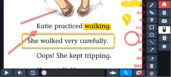 在阅读中学会做笔记也是很重要的阅读习惯,myON的阅读界面可提供荧光笔工具、笔记工具来进行划线、批