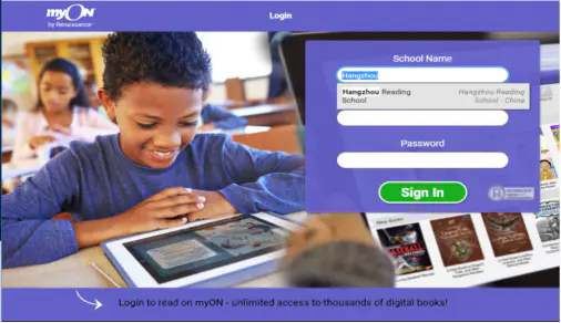 1、点击“myON Login”