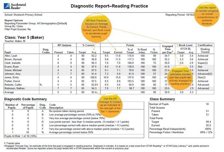 阅读训练报告:通过查看Diagnostic Report – Reading Practice阅读整体报告,了解测试次数和通过率。