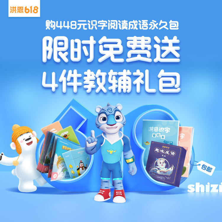 活动期间购买此课程赠洪恩识字卡 启蒙篇(上)(100张)+洪恩识字子集阅读 第一季(1-10)塑封版+洪恩识字描红本2本+趣味成语绘本+故事VIP月卡