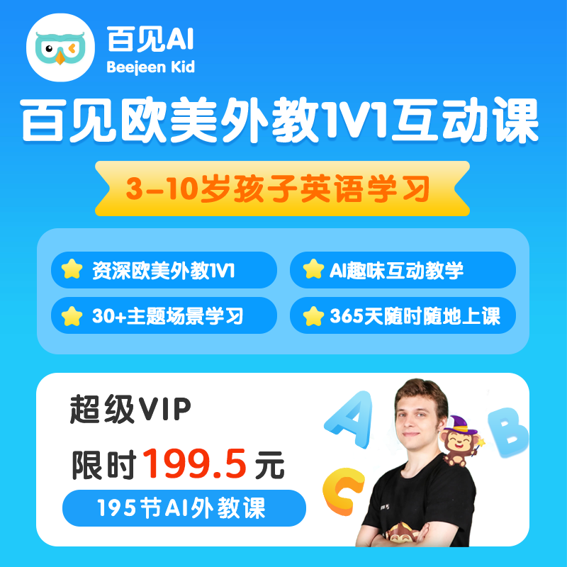 课程时长、节数:共195节课,30分钟/节课(5分钟课前预习,20分钟外教1V1互动课,5分钟课后练习)