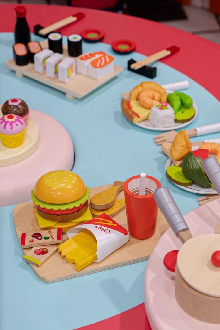 用餐区专设模拟回转寿司台,与模拟城市游玩动线完美融合。与家人畅聊,孩子就在身旁放心玩耍!