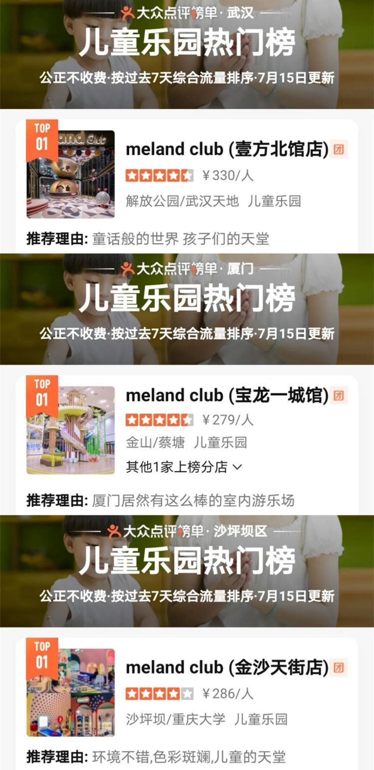 蝉联各大城市亲子乐园热门榜前列