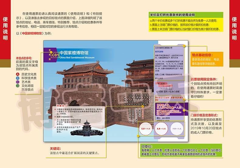 2、个别馆点在使用通票时会有限定条件,凡有限定条件的一律在该馆点票面上加以文字注明,一定要注意查看。