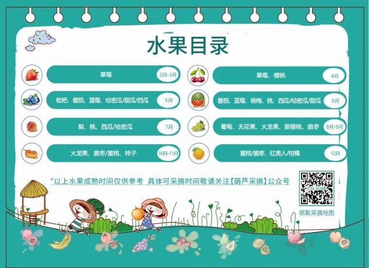 【采摘时间/地点】具体果园信息、采摘时间请关注“葫芦采摘”公众号内【水果快报】,以【采摘预约】开放信息为准。