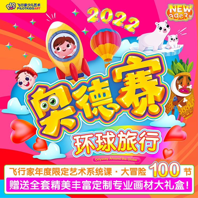 【课程内容】飞行家少儿艺术年度限定100 节超高性价比创意美术系统课程、10大神秘国家、涵盖100个趣味主题、12 大思维提升、100 幅完整艺术作品、9 大能力培养140 个丰富材料、53 个艺术词汇、35 种创意绘画形式。