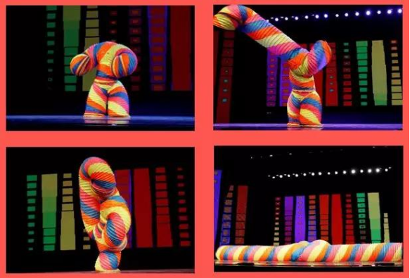 而是一种由表演者藏身与彩虹水管道具中