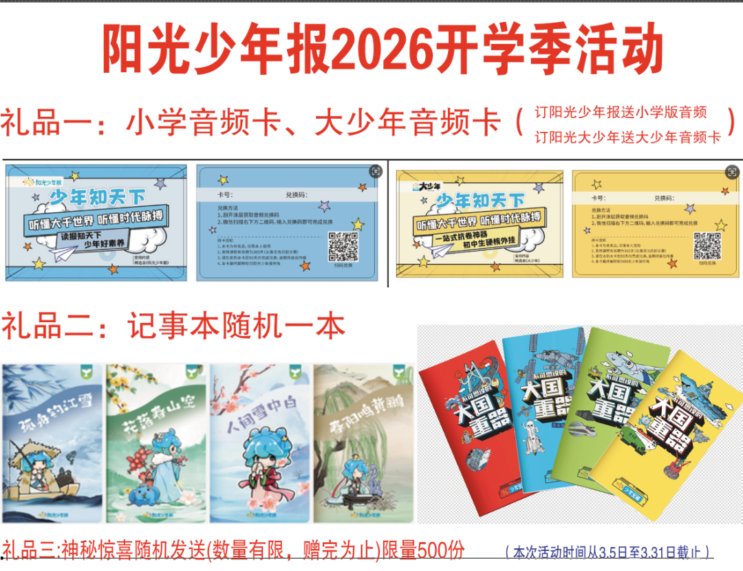 【特此注意】:阳光少年报订期整月计算,如不特别备注,默认从下单当月开始(休刊期间下单默认休刊后起订),即每月月底最后一周周二12点前下单,默认当月起投,会补发当月已发出期数,向后顺延十二个自然月。除寒暑假及法定小长假休刊、不出报外,其余时间每周一期,全年约36期。介意可选择其他需要的月份起投。