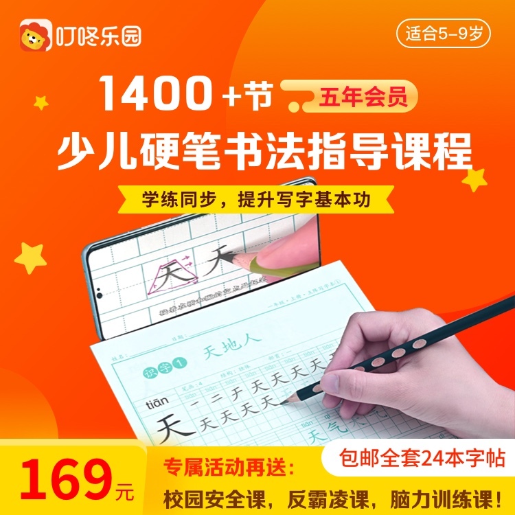 【活动信息】购买即赠送一套小学生安全通识课10节,再送校园反霸凌课8节,再送脑力训练课三个月(一天可解锁一节,3个月内有效)!与硬笔书法课一同开通