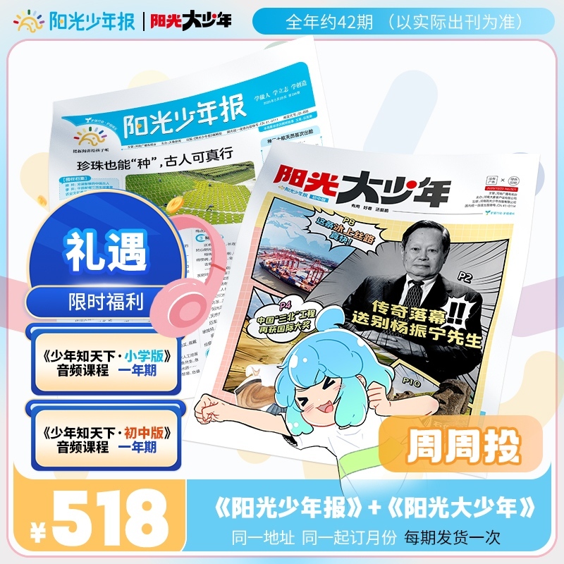 (3)【特此注意】:阳光少年报订期整月计算,如不特别备注,默认从下单当月开始(休刊期间下单默认休刊后起投),即每月月底最后一周的周四中午11点前下单,默认当月起投,会补发当月已发出期数,向后顺延十二个自然月。除法定小长假休刊、不出报外,其余时间每周一期,全年约42期。介意可选择其他需要的月份起投。