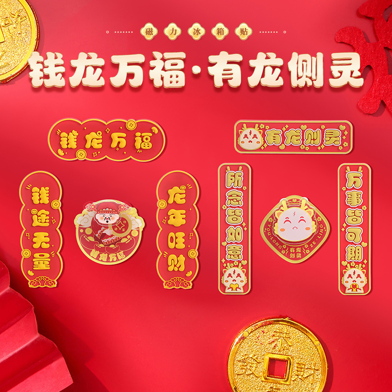 产品内含:可旋转冰箱贴【钱龙万福+有龙则灵】各一套
