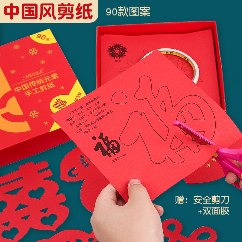 产品内含:中国风剪纸90张烫金礼盒包装(送随机颜色安全剪刀+双面胶)