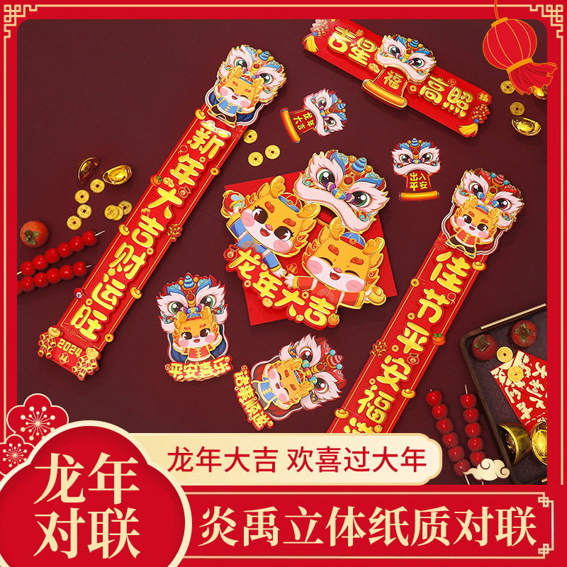 产品名称:2024龙年立体纸质烫金福字门贴春节对联