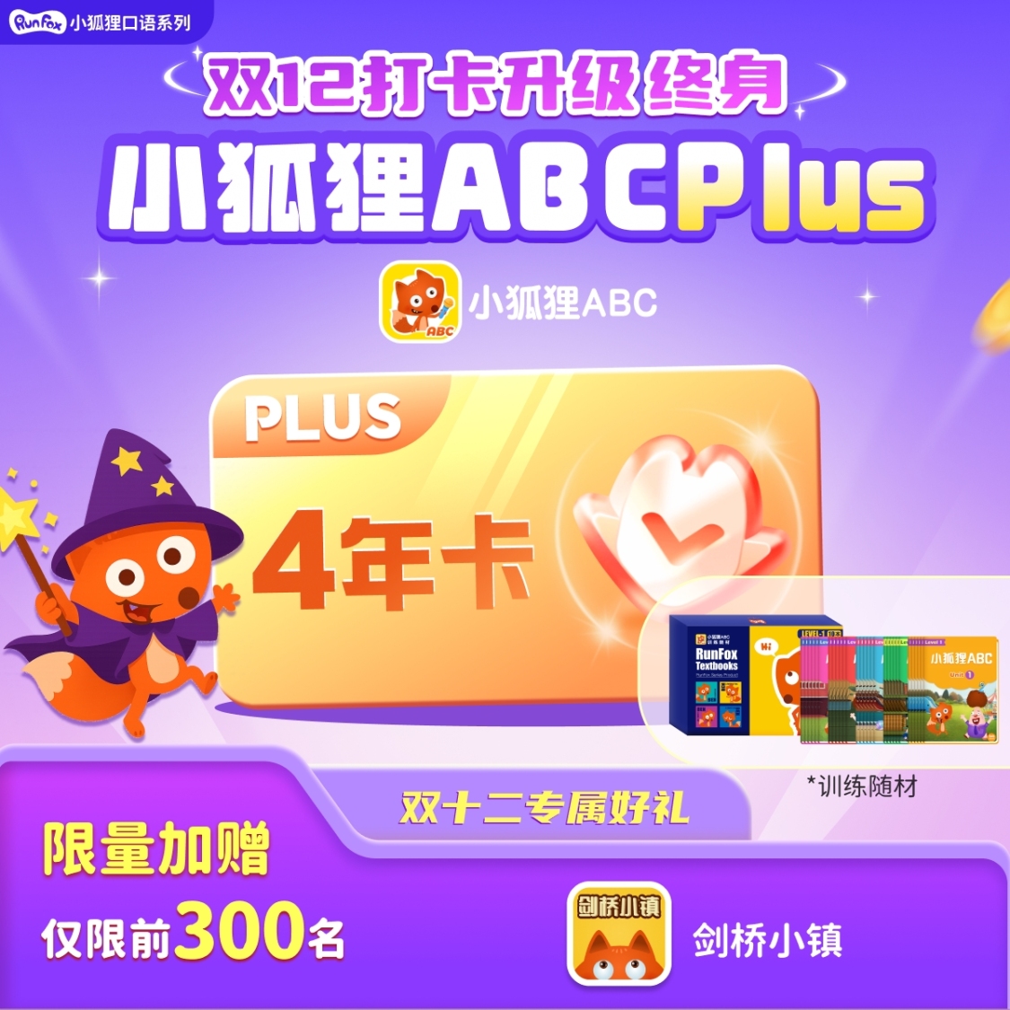● 小狐狸ABC年卡Plus4年卡:剑桥小镇+专属服务1年+打卡升级终身会员