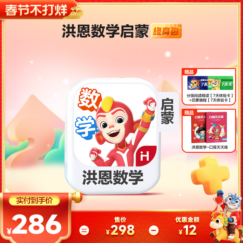 购买【数学永久包】赠:分级阅读畅读周卡+启蒙编程周卡+价值48元洪恩思维-口算天天练