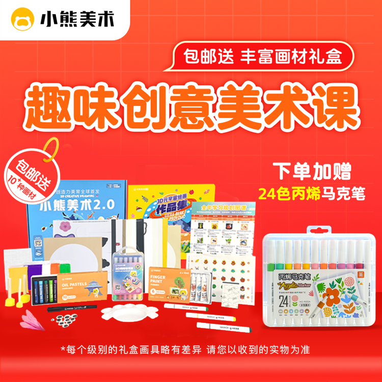 活动信息:活动期间内购买小熊美术体验课,额外加赠24色丙烯马克笔