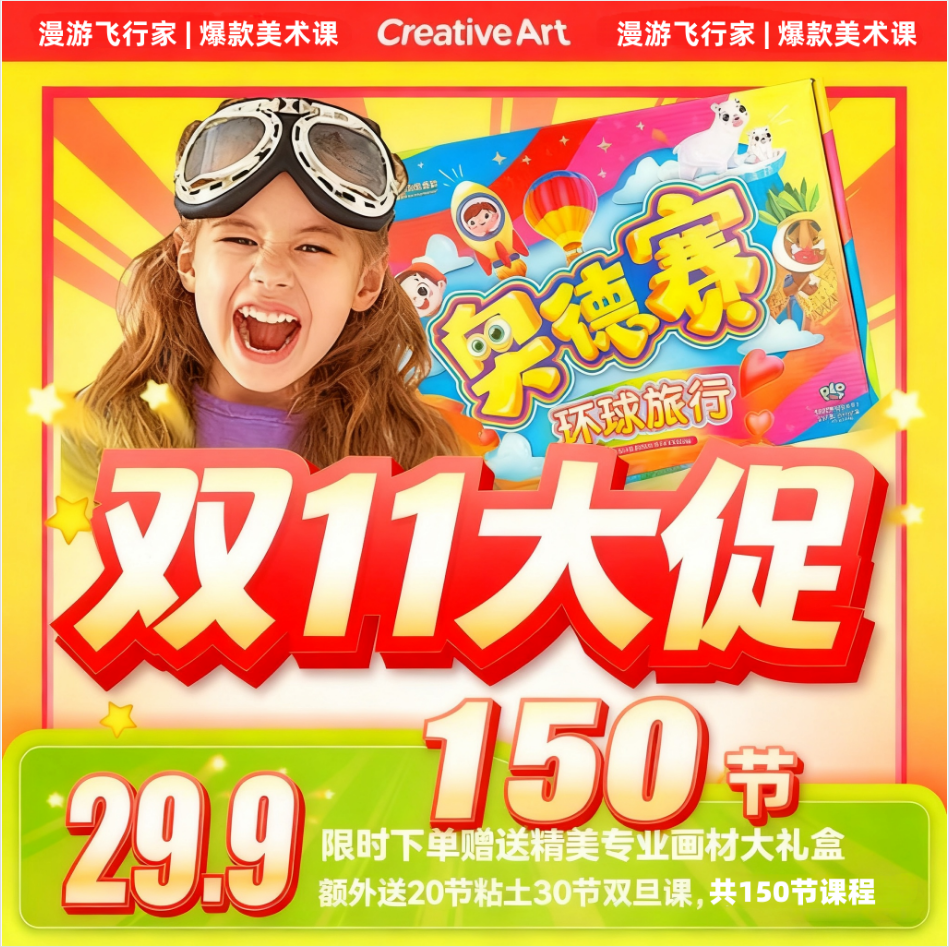 【课程内容】飞行家少儿艺术年度限定100 节超高性价比创意美术系统课程、10大神秘国家、涵盖100个趣味主题、12 大思维提升、100 幅完整艺术作品、9 大能力培养140 个丰富材料、53 个艺术词汇、35 种创意绘画形式。