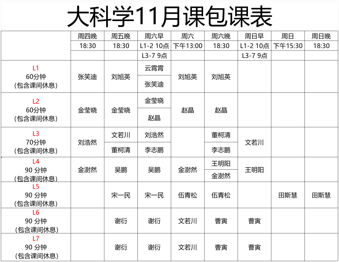 L4-L7:16次直播课,每次直播课90分钟,有课间休息