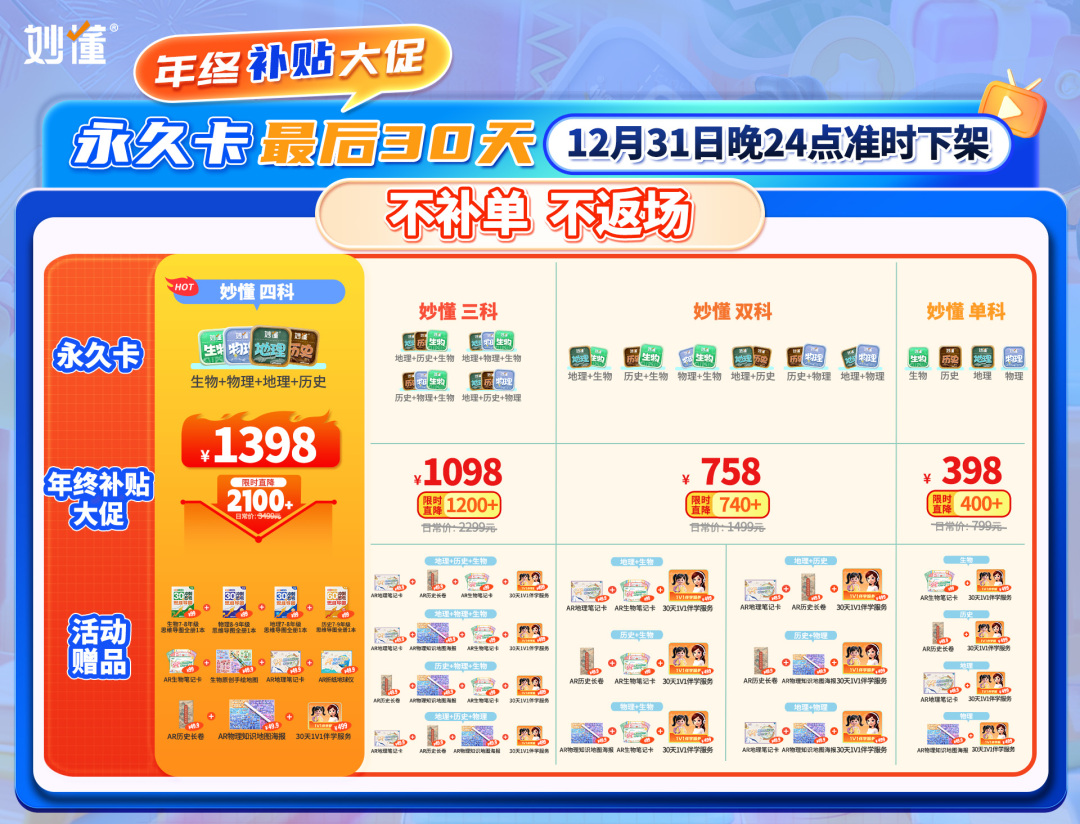 【内容包含】妙懂物理APP会员/妙懂历史APP会员/妙懂物理APP会员/妙懂生物APP会员