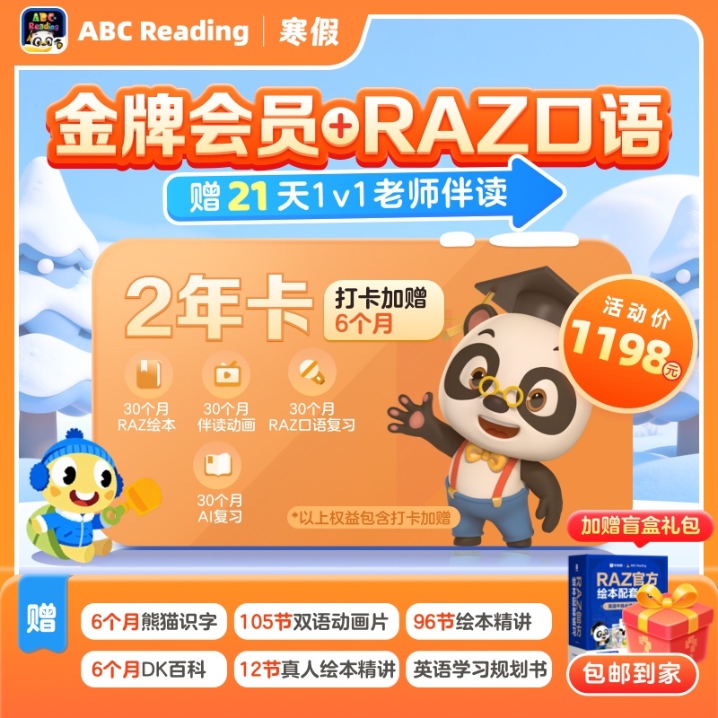 【课程名称】ABCReading金牌会员+RAZ口语联合【2年卡】