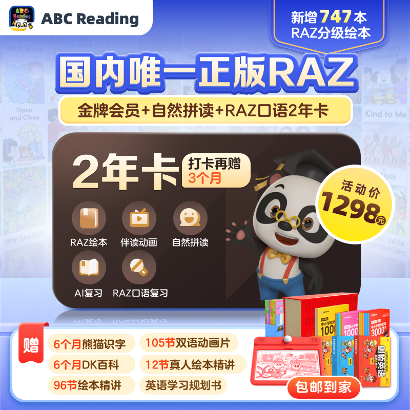 【课程名称】ABCReading金牌会员+自然拼读+RAZ口语会员联合【2年卡】