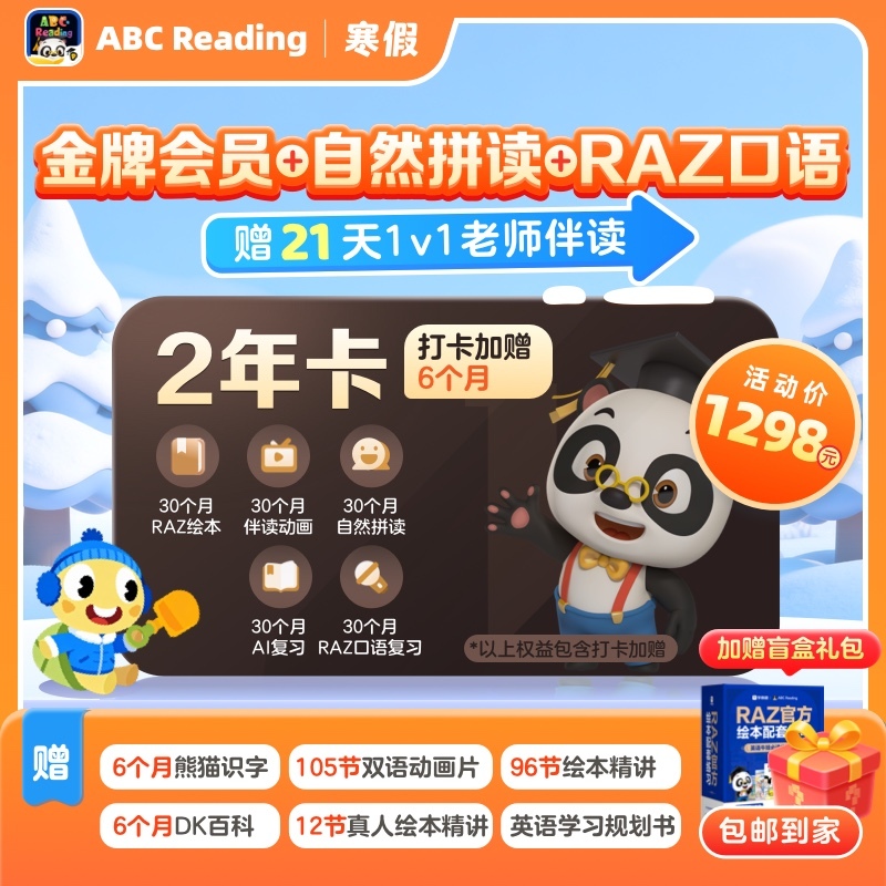 【课程名称】ABCReading金牌会员+自然拼读+RAZ口语会员联合【2年卡】