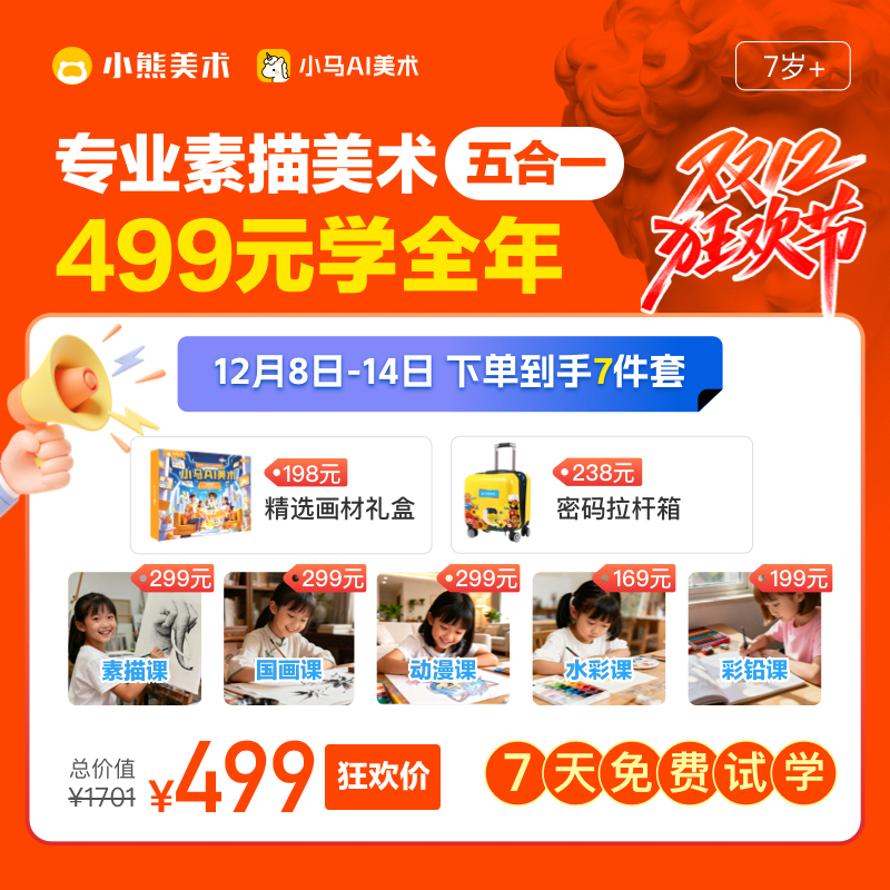【课程名称】小马AI美术专业素描美术五合一1年会员卡