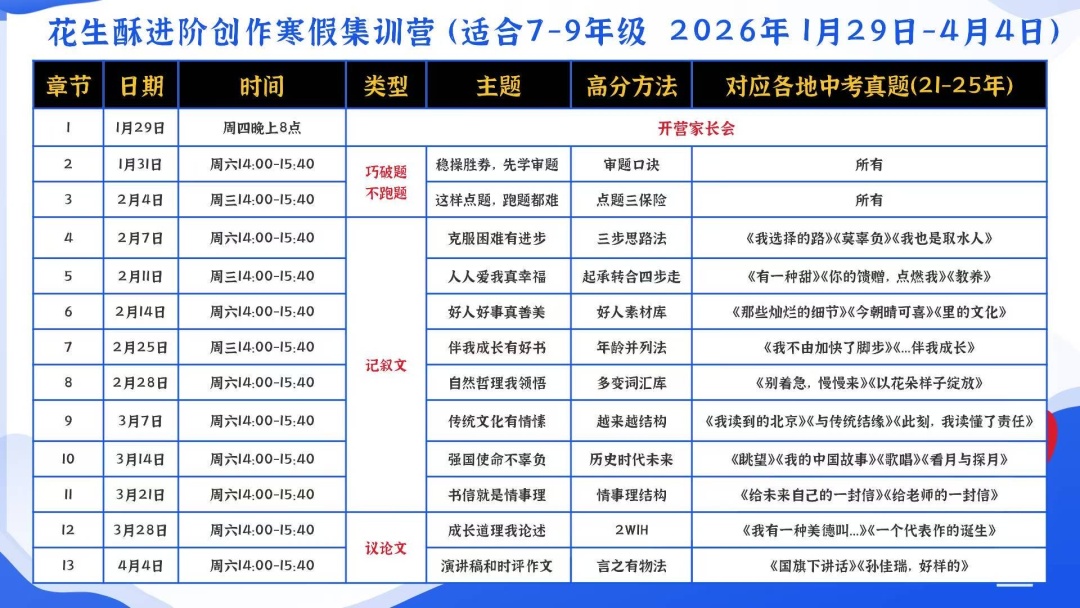 ● 预备班:2026年1月30日开营【直播时间20:00~21:00;2月1日第一节课】