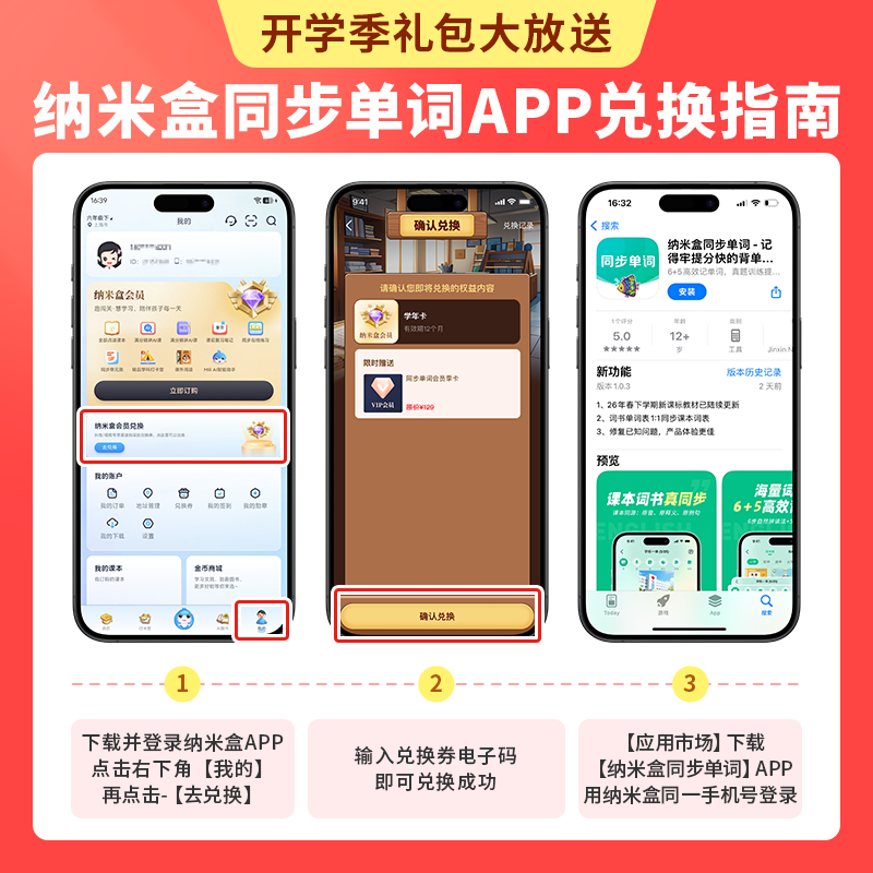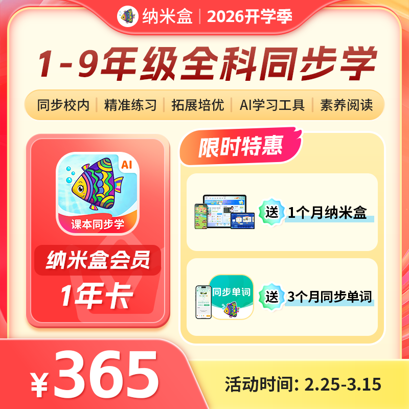 【活动信息】2月27日-3月15日24点,开学季限时福利,购买1年卡加赠纳米盒1个月+同步单词3个月