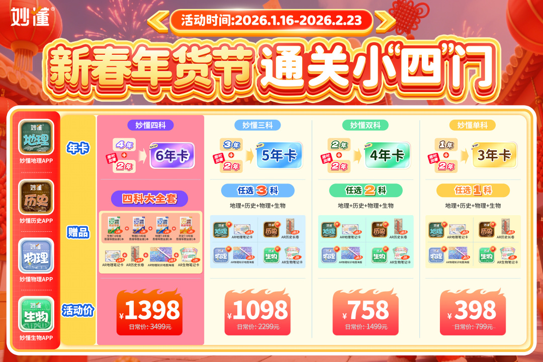 【内容包含】妙懂物理APP会员/妙懂历史APP会员/妙懂地理APP会员/妙懂生物APP会员