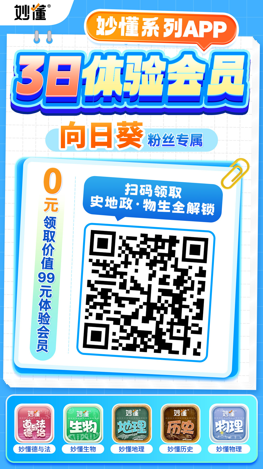 【内容包含】妙懂物理APP会员/妙懂历史APP会员/妙懂地理APP会员/妙懂生物APP会员