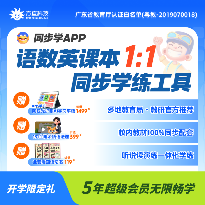 【课程名称】语数英课本1:1同步学练【1年/3年/5年卡】