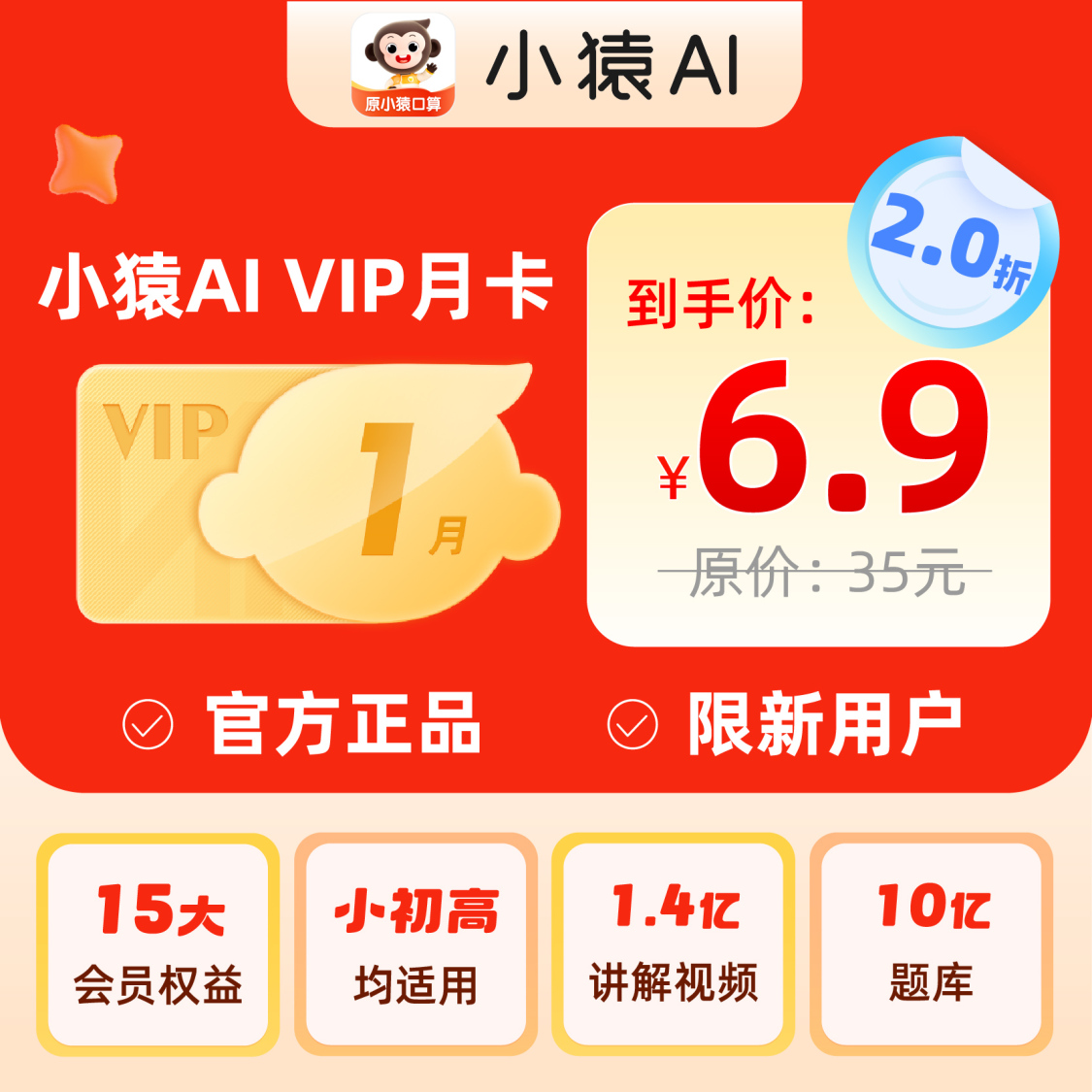 【产品名称】小猿AI(原小猿口算)会员月卡