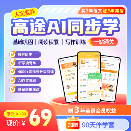 【🔥独家超级大破价!🔥买语文同步学送英语同步学+赠90天伴学营!!】高途AI同步学【3年卡/终身卡】,涵盖1-9年级语英【课本同步学】,基础巩固|阅读积累|写作训练